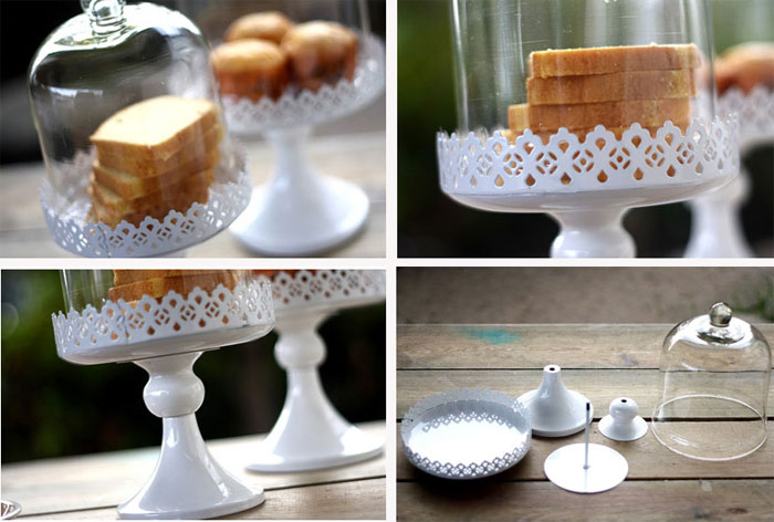 Những món bánh điểm tâm được bày biện trông thật hấp dẫn trên chiếc đế bằng nhựa và phần nắp thủy tinh, giá thành khoảng 145.000 đồng/ bộ.