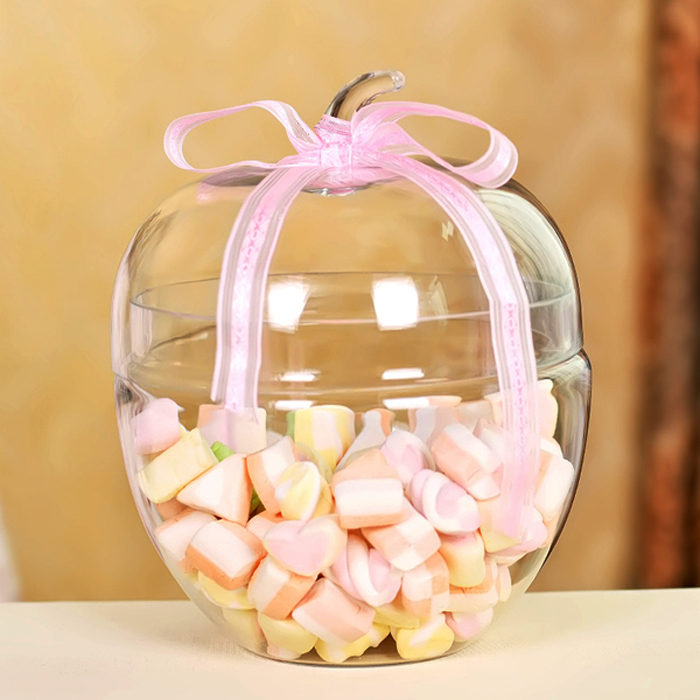 Hũ Chai lọ thủy tinh đựng kẹo hình quả táo tròn xinh tạo sức hút đối với những đứa trẻ. Đường kính 21 cm, chiều cao 25 cm, giá thành khoảng 130.000 đồng/ chiếc.