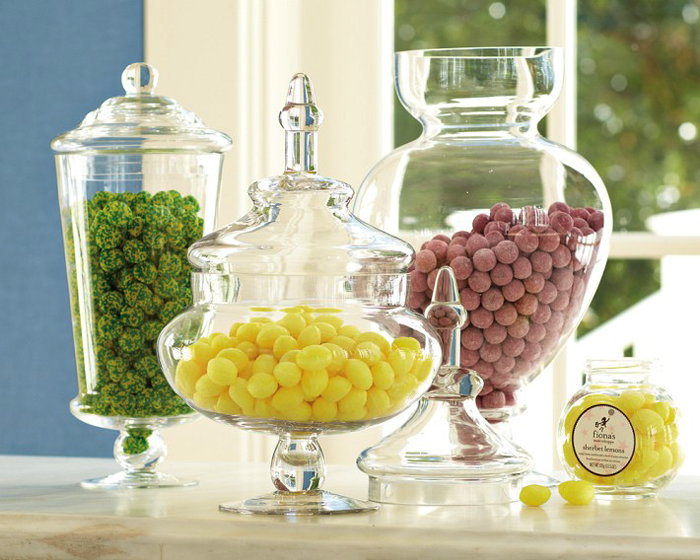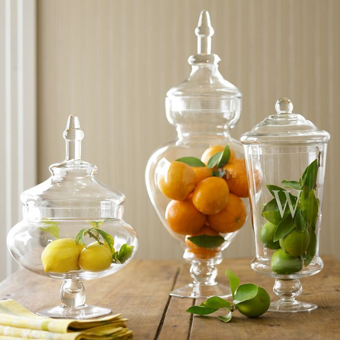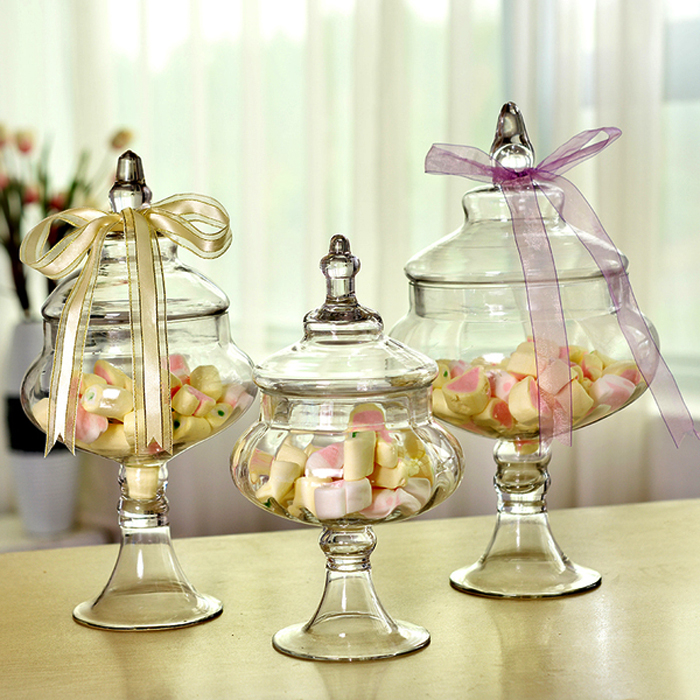 Không chỉ thích hợp đựng bánh kẹo, lọ thủy tinh trong suốt cũng có thể dùng để đựng hoa quả, ô mai hấp dẫn, giá thành khoảng từ 80.000 đồng/ chiếc.