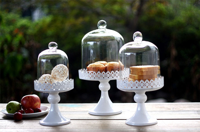 Mẫu thiết Chai lọ thủy tinh kế dáng cao, thân chắc chắn, nắp đậy kín để bảo quản thực phẩm bên trong, thích hợp trưng bày bánh kem, giá thành khoảng 150.00 đồng/ chiếc.
