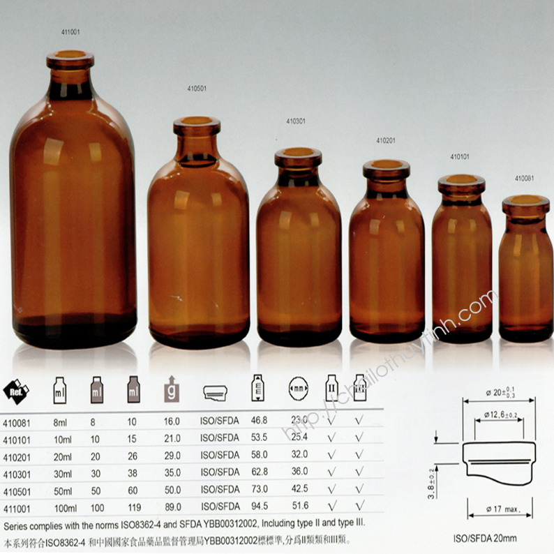 Dung tích: 30ml; 20ml;10ml; 8ml