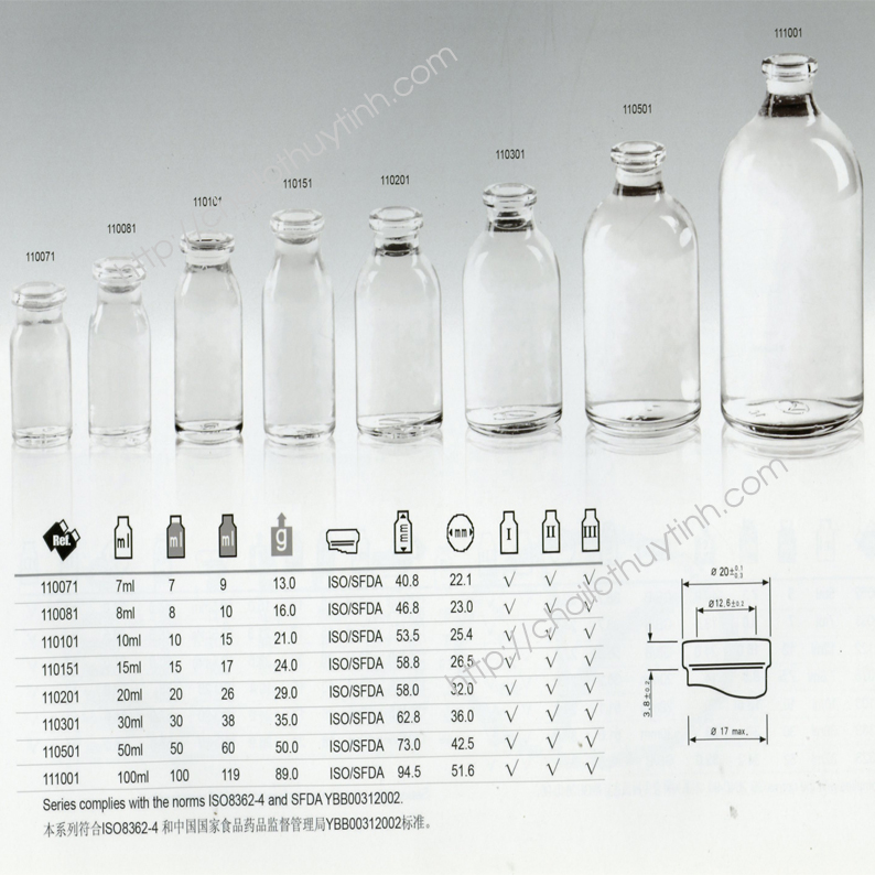 Dung tích: 7ml; 8ml; 10ml; 15ml; 20ml; 30ml; 50ml; 100ml
