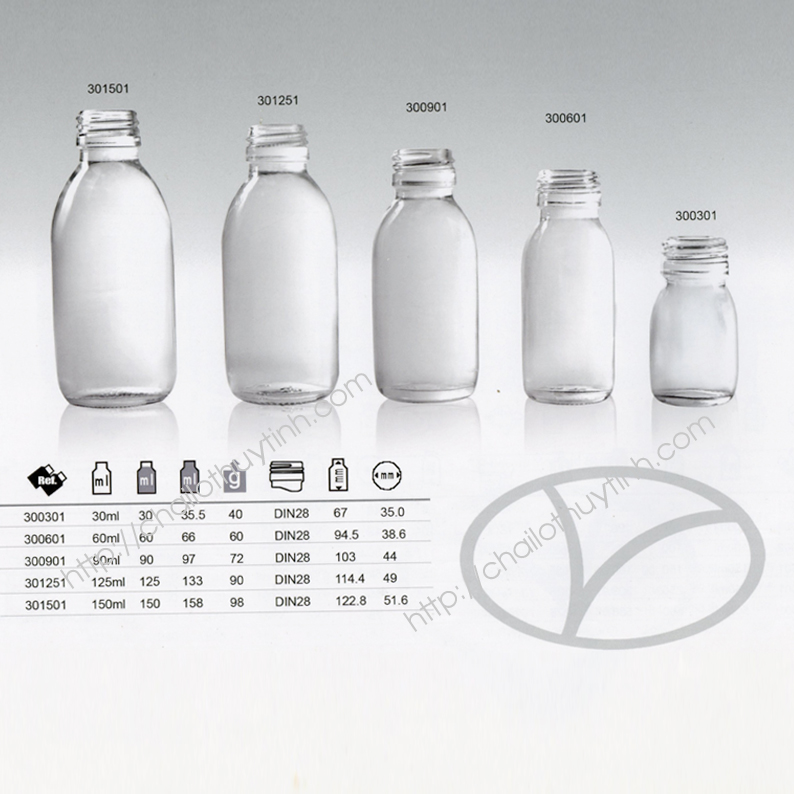 Dung tích: 30ml; 60ml; 90ml; 125ml; 150ml